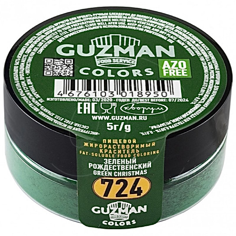 Краситель пищевой сухой жирорастворимый GUZMAN "Зелёный рождественский 724" 5 г