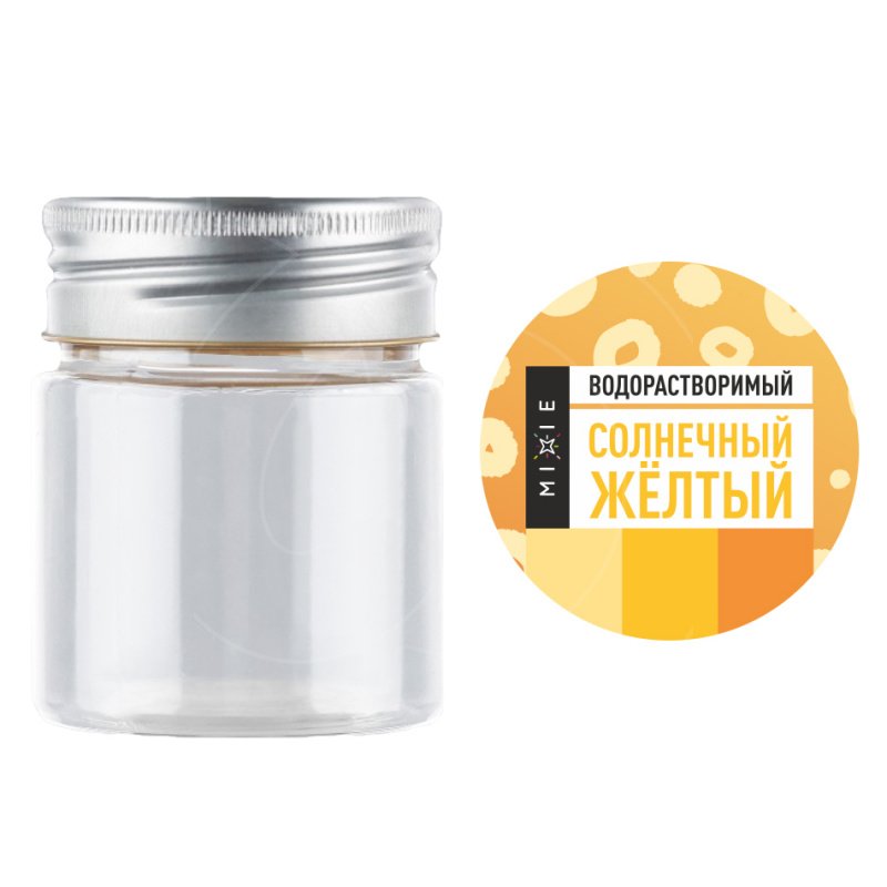 Используйте многоразовую пластиковую баночку для хранения водорастворимого красителя Mixie "Солнечный жёлтый".